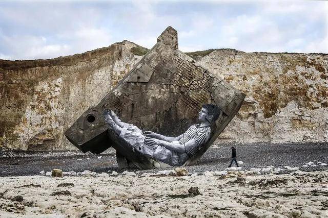 也是因此,JR介入政治议题的方式没有挑衅的意味,仍显现着对连结、对话和理解的期许——这早在2005年就可见雏形。那年,JR和作家 Marco Berrebi在以色列和巴勒斯坦旅行,途中拍摄大量从事相同工作的以色列人和巴勒斯坦人的肖像,随后印刷成巨幅照片,张贴在边境隔离墙的两侧。相似的面孔让人难以分辨国籍,人心的边界随之消泯。这个名为Face 2 Face的项目让JR在异国被逮捕——但那之后,他仍继续冒险,在美墨边境,在乌克兰。