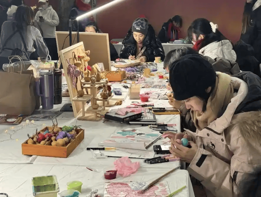如今,非遗体验类消费已成为大众的热门选择,兼具文化内涵与参与感的项目让消费者愿意为“仪式感”买单。在798艺术区暖心小屋内的“幸运印刷局”内,工作人员正指导市民和游客印制马年专属非遗红包。“在这里能用上非遗大师设计的小马纹样,搭配我自己手写的祝福,做出独一无二的新年红包,特别有意义。”完成制作的大学生李同学举着刚晾干的红包告诉记者,她和室友专门打卡了园区内的非遗体验项目,“比起直接买成品,这种能参与其中的活动更有纪念价值”。与之相邻的“福禄制造局”同样人气爆棚,绘制葫芦的体验吸引了不少市民驻足,家长带着孩子细细勾勒线条、填充色彩,将对新年的期许绘于葫芦之上。工作人员告诉记者:“葫芦有‘福禄双全’的吉祥象征,很多家长都说这份亲手绘制的‘福禄’是给孩子最好的新年祝福。”与此同时,在首钢园的跨年嘉年华上,非遗市集与机甲艺术碰撞融合,收获大量客流;安徽民俗非遗鱼灯在通州区湾里·王府井WellTown的跨年人群中“游曳”,成为文化消费的亮眼注脚。